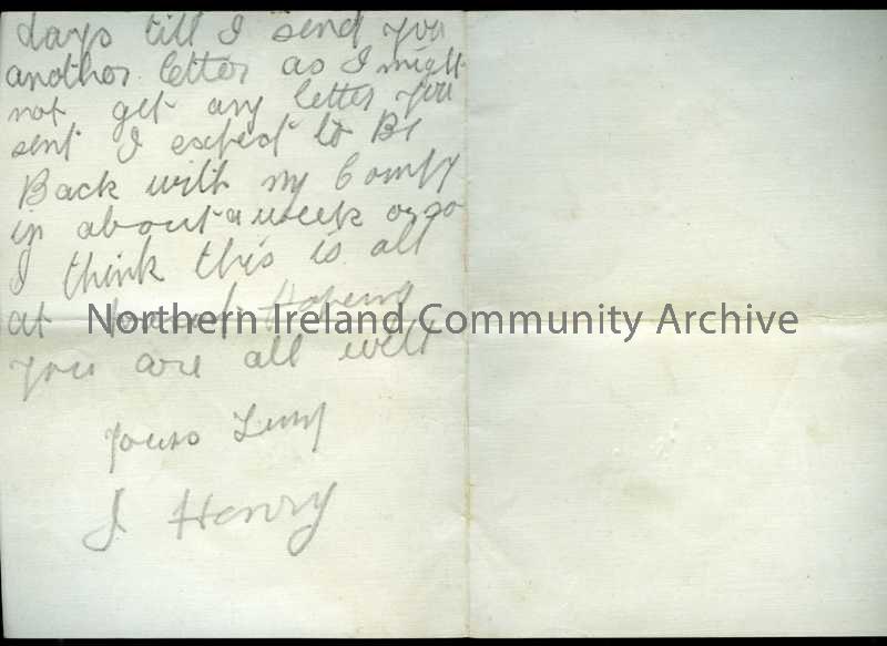 Double folded page of handwritten letter in pencil from James to his father. James is in hospital, hurt side falling with box of ammunition – 32b