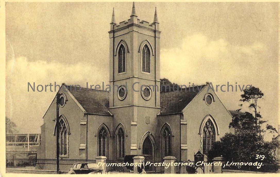 Postcard titled, 'Drimachose Presbyterian Church, Limavady' (LVADY1997.133)