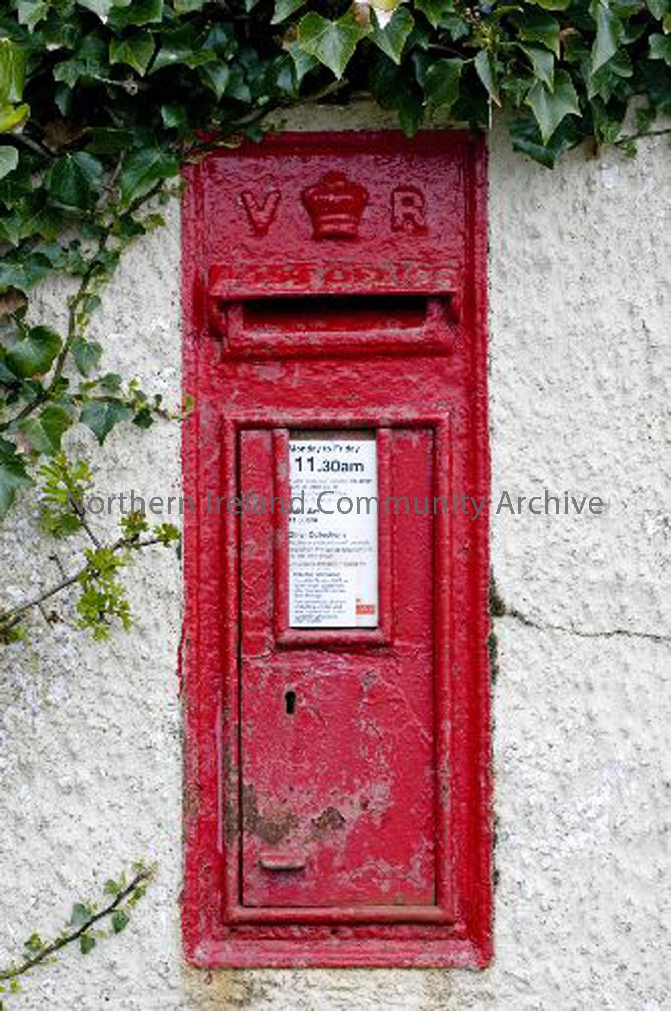Victorian postbox in the gateposts at Largy School, one of the last still in use