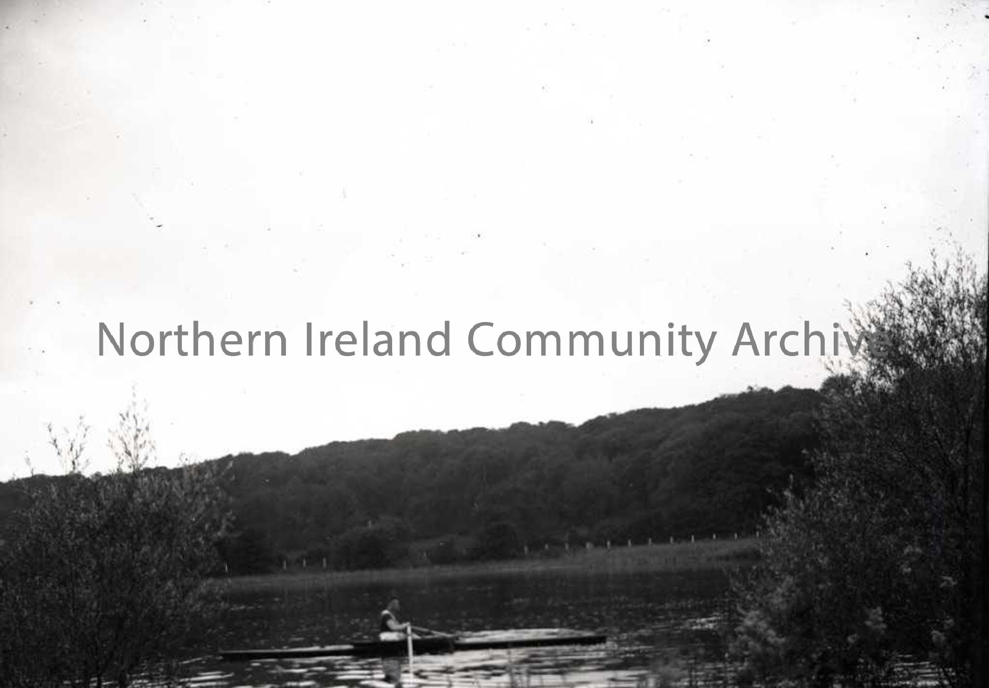Single rower (Edmiston) in canoe, out on river. No 85 in Nature Slides inventory