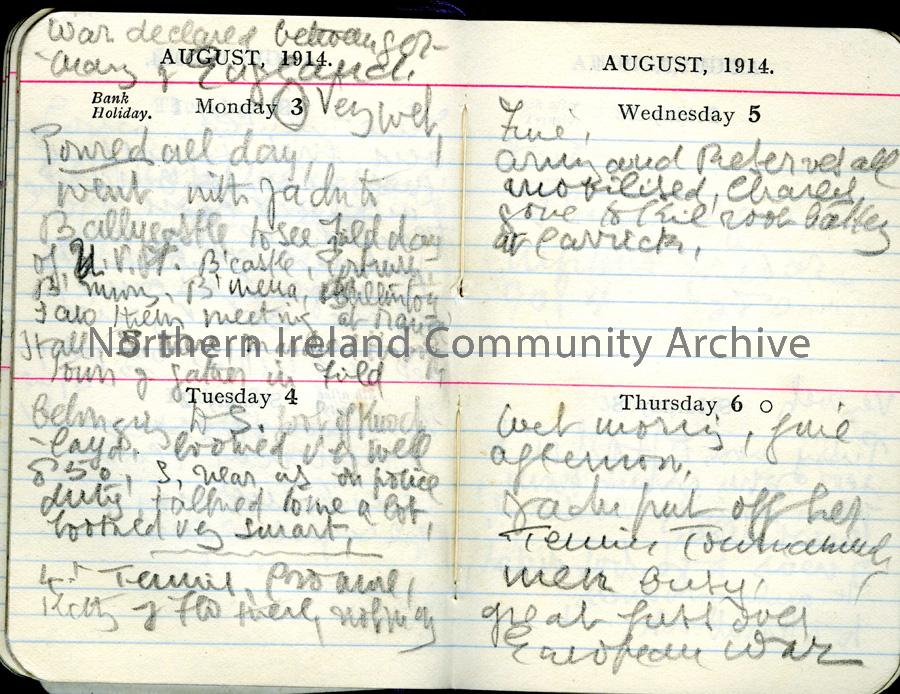 Extract from Emily Hezlet's diary. She writes that war has been declared.