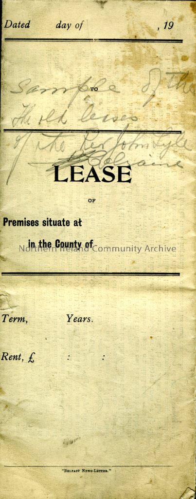 Example of the old leases of the Reverend John Lyle of Knocktarna, Coleraine, County Londonderry. Twentieth century. Inside the document has not been signed or dated.