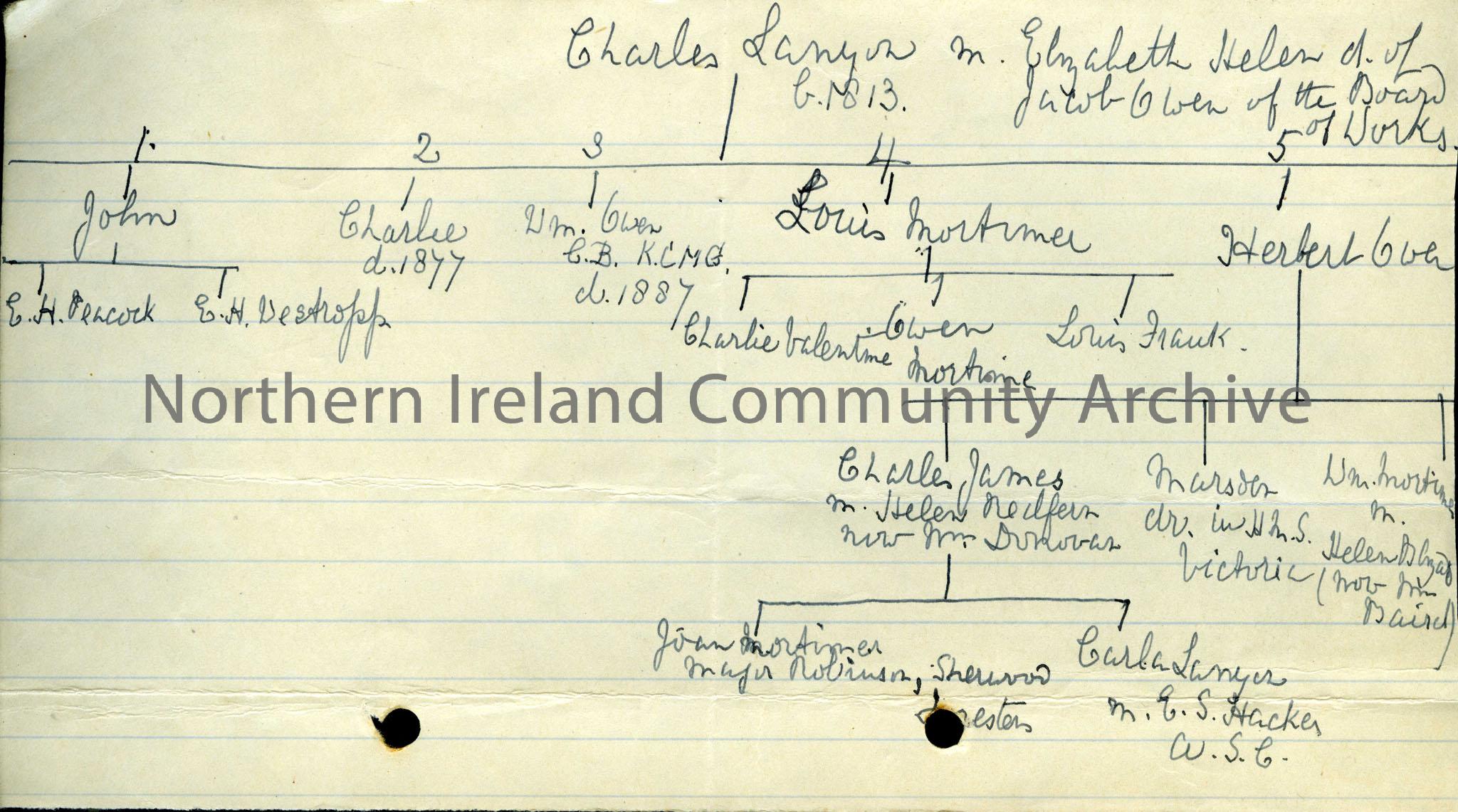 Family tree of the descendents of Sir Charles Lanyon, drawn up by Elizabeth H. Westropp.