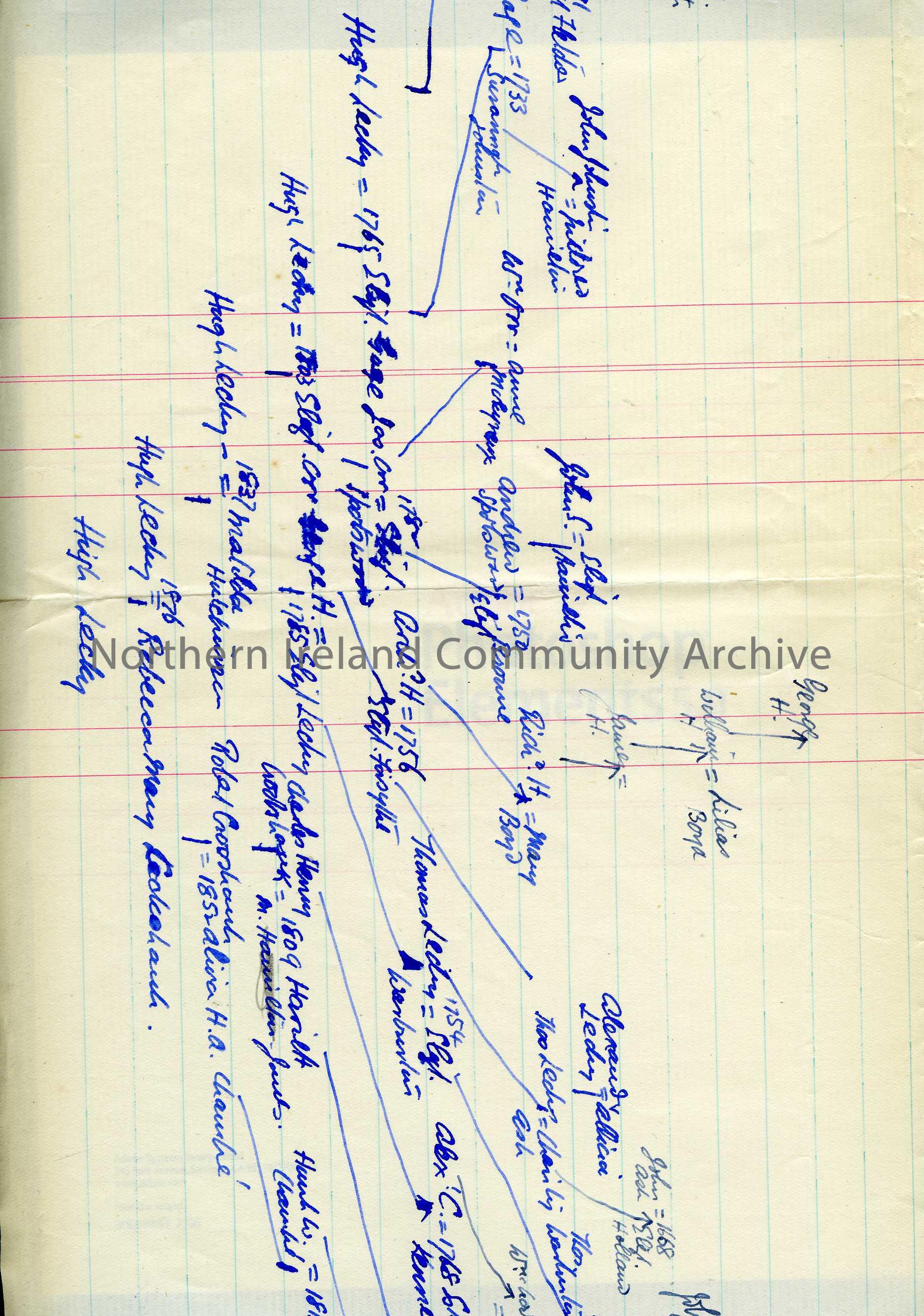 Family tree detailing Lecky family and descendants