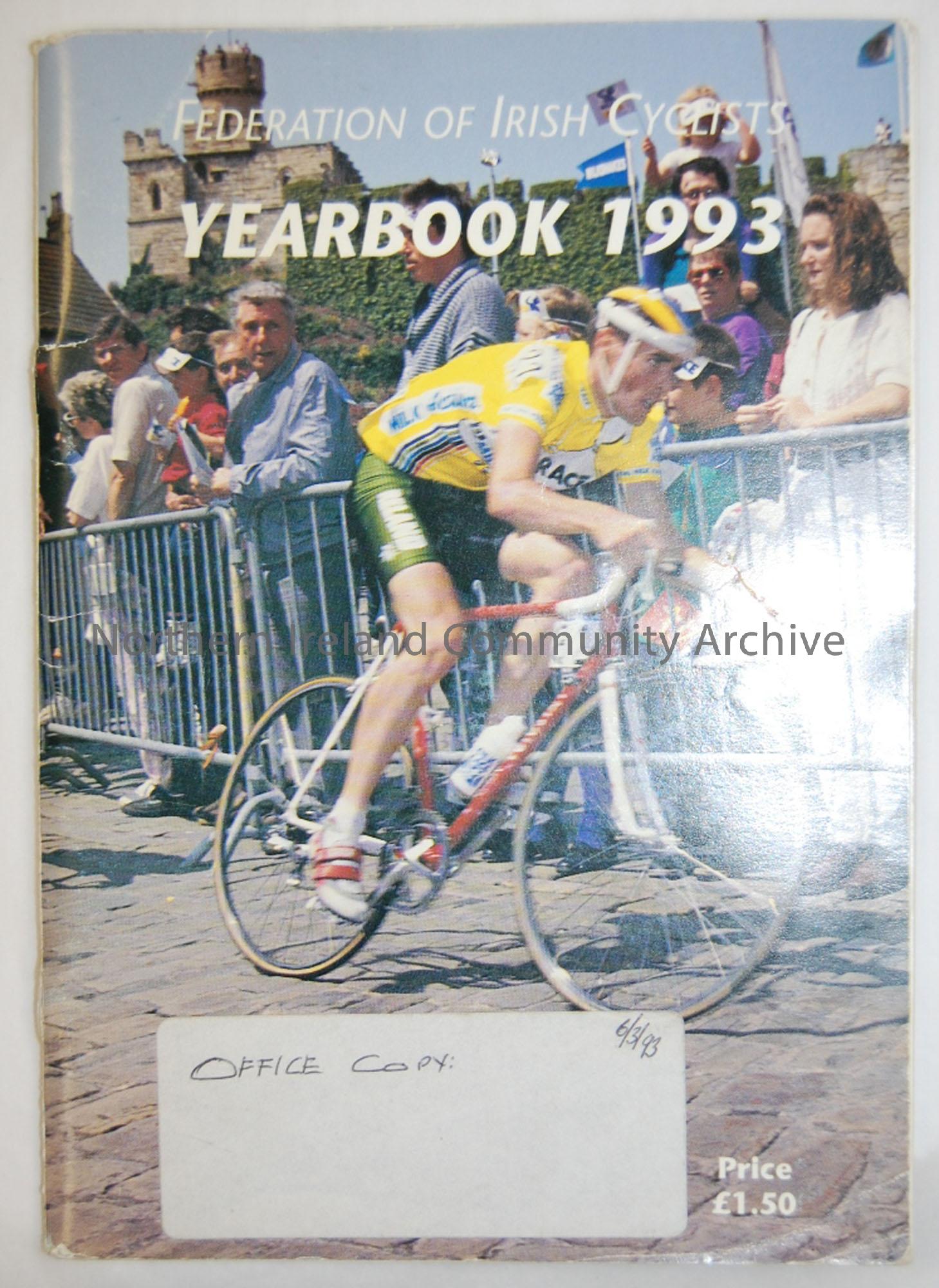 Federation of Irish cyclists 1993 yearbook. Photograph of cycle race on cover.
