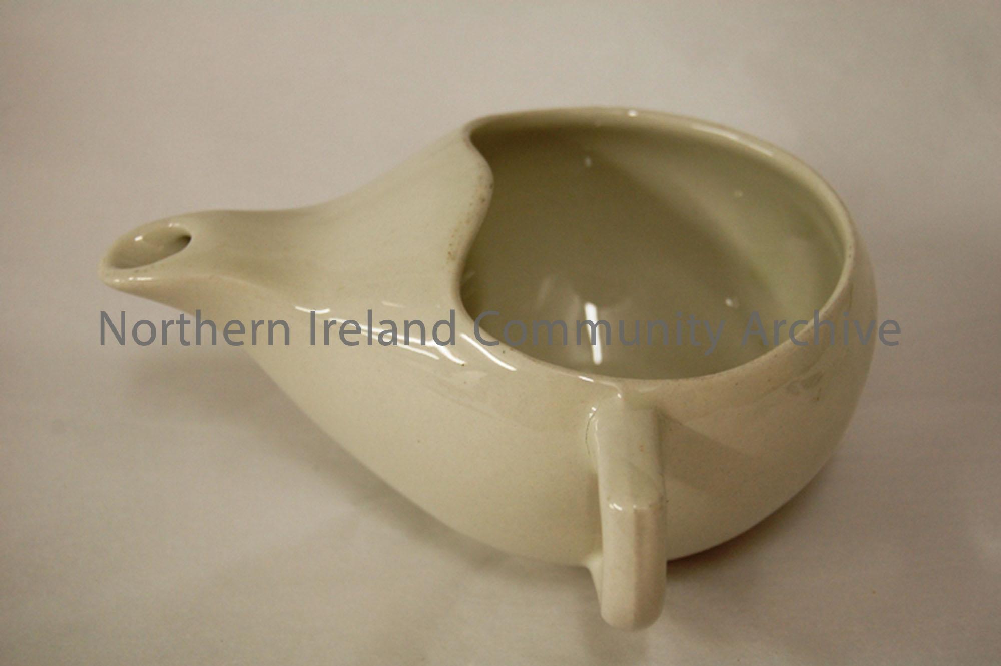 Feeding cup. Used for feeding patients too weak to manage themselves.