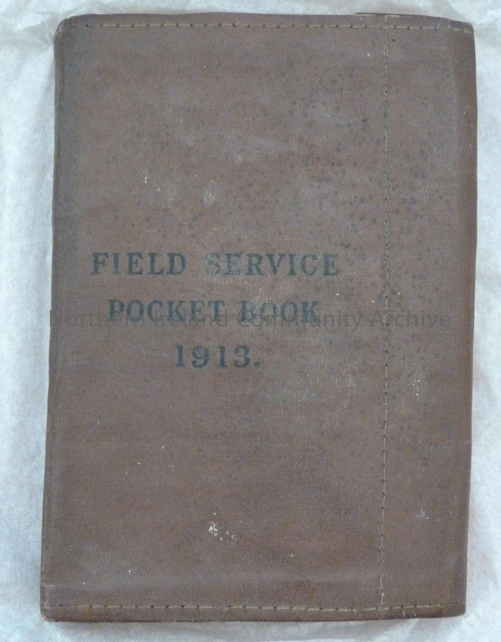 Field Service Pocket Book 1913. Book with brown leather cover.