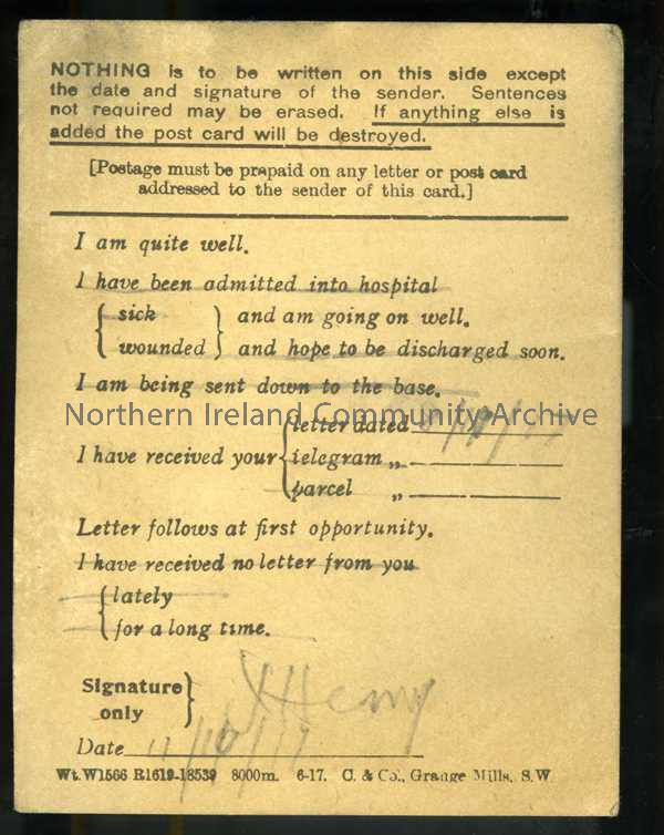 Field Service Postcard from James to his father – 39g