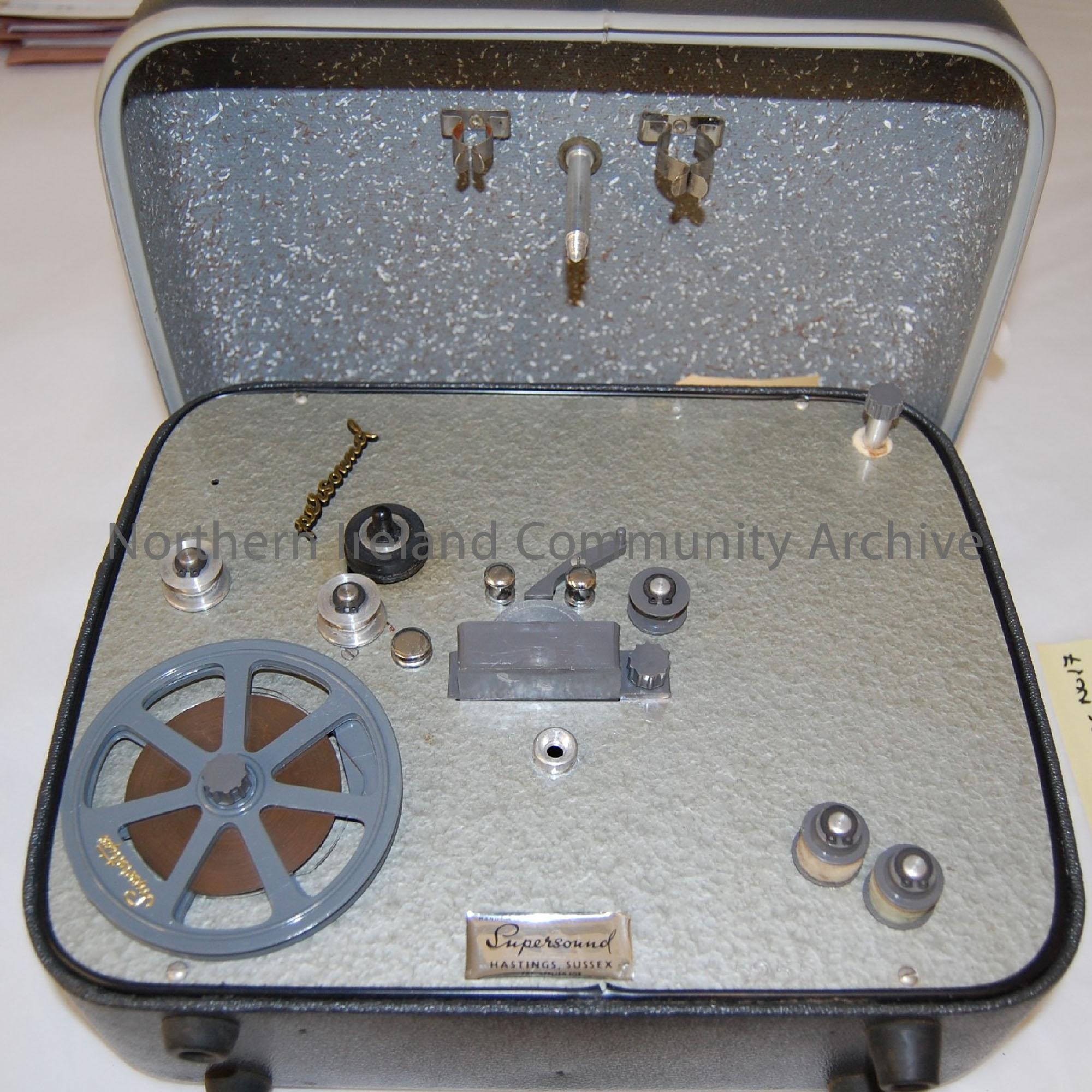 film striper encased in hard plastic case. Personnel model no. 5255, manufactured by Supersound, Hastings