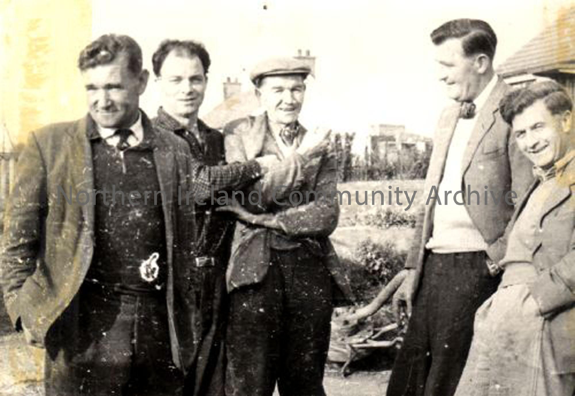 Five men talking at the bottom of Miller Avenue (2537)