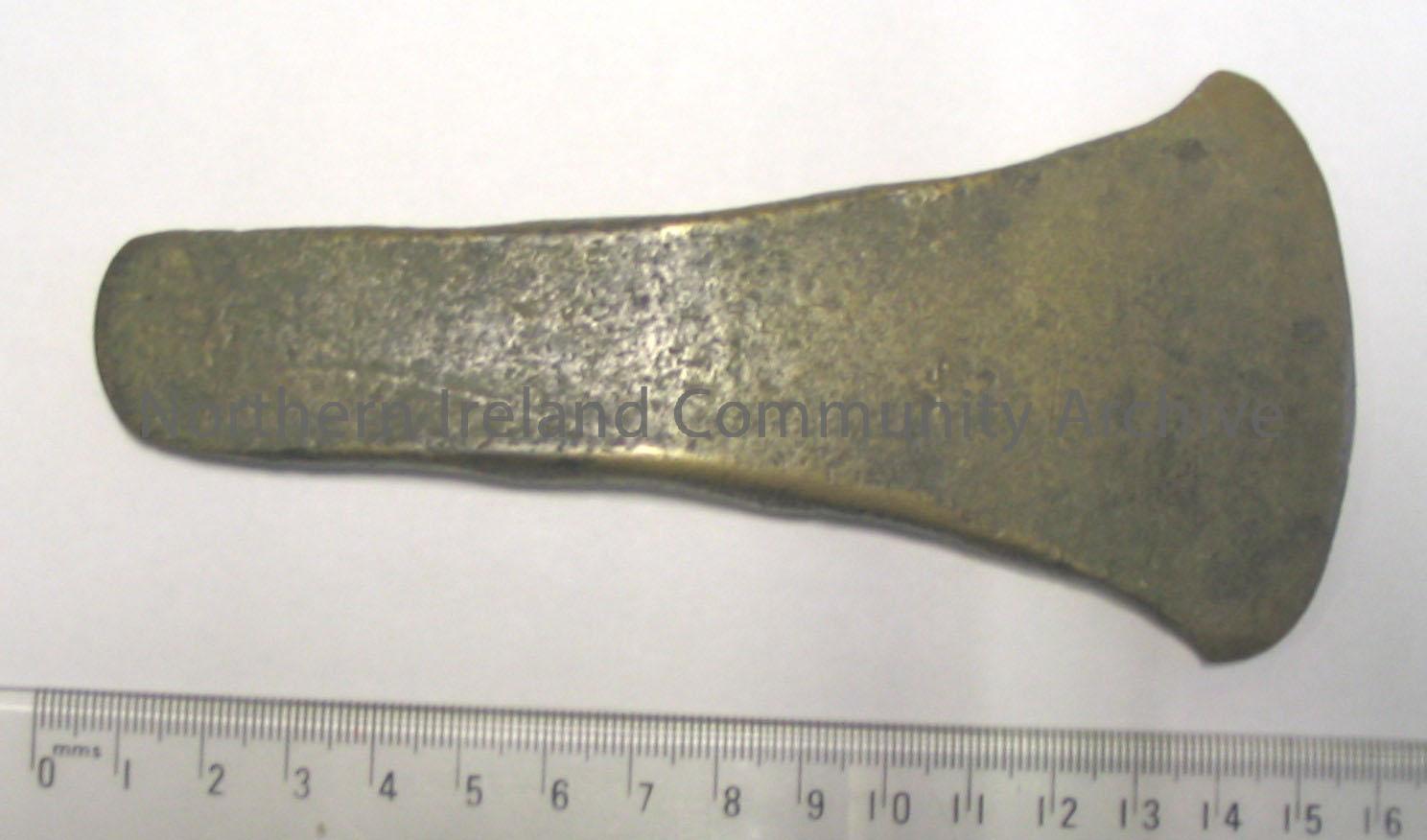 Bronze axehead, flat,thin butt and slightly exp...