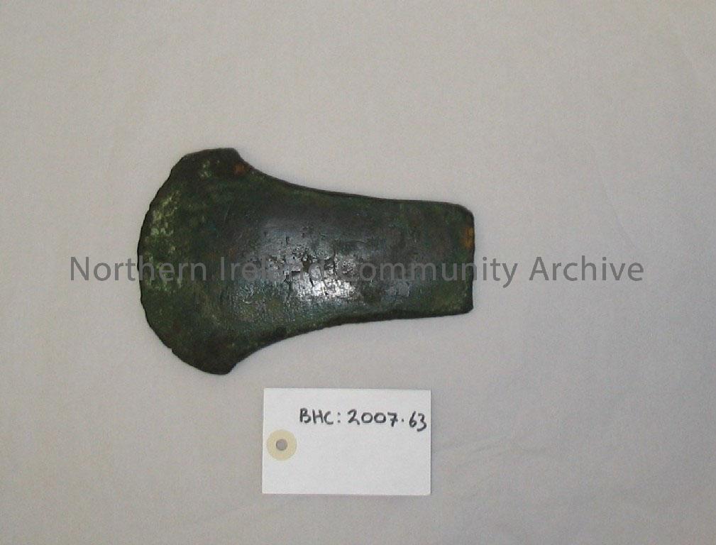 flat axe, bronze. Found in Co. Antrim by members of the donor’s family – 2007.63 (2)