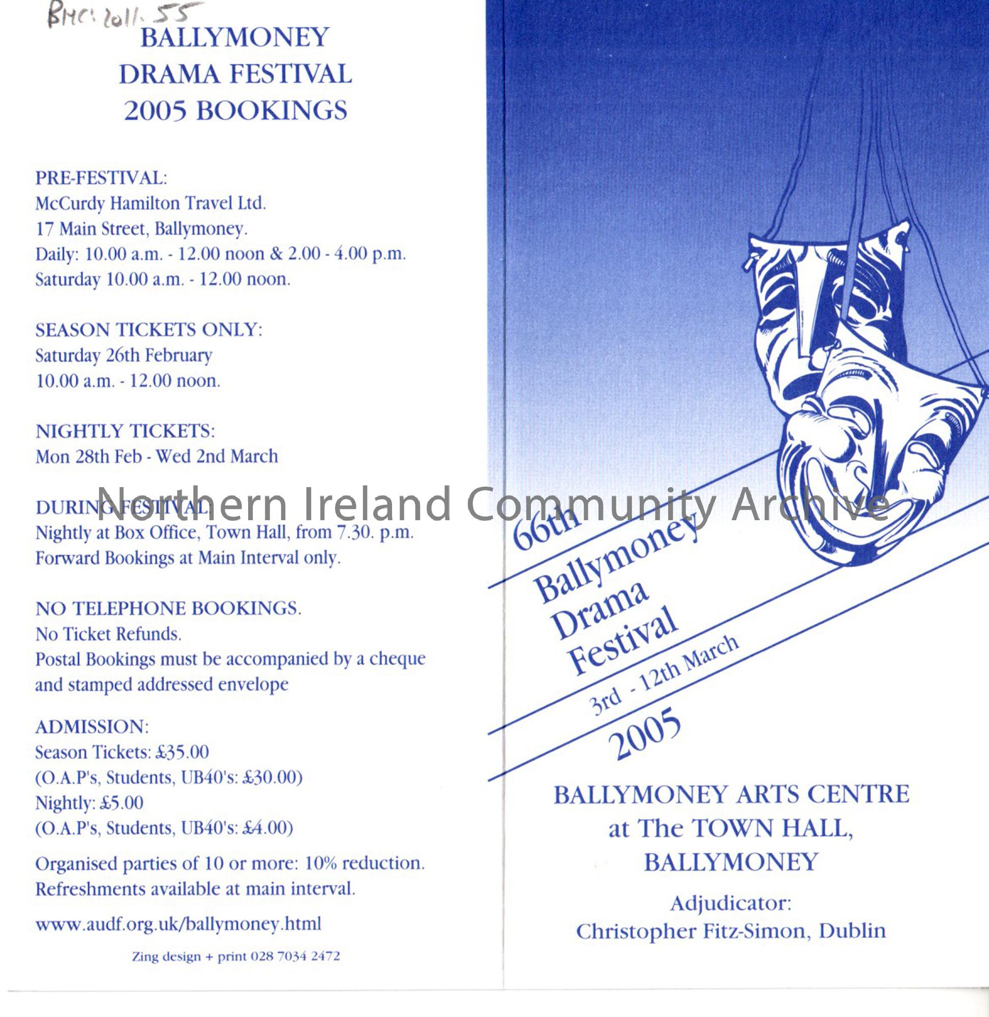 flier for the 66th Ballymoney Drama Festival 3rd to 12th March 2005