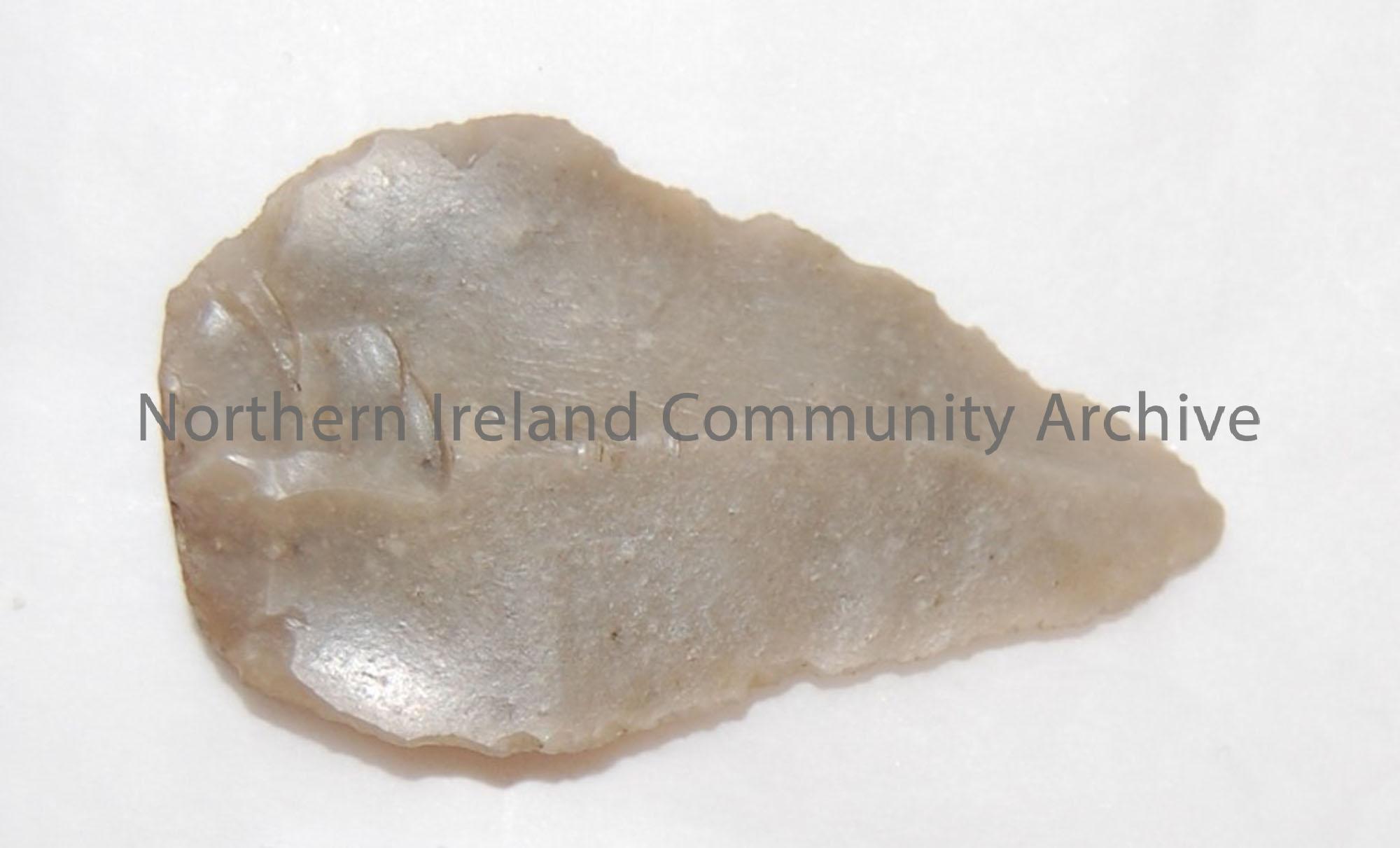 Flint tool, shaped like an arrow head, though not a classic Bann flake