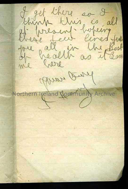 Folded double page of handwritten letter in pencil from James to sister Georgina [Georgie]. Transferring to Bray Convalescent Hospital – 51b