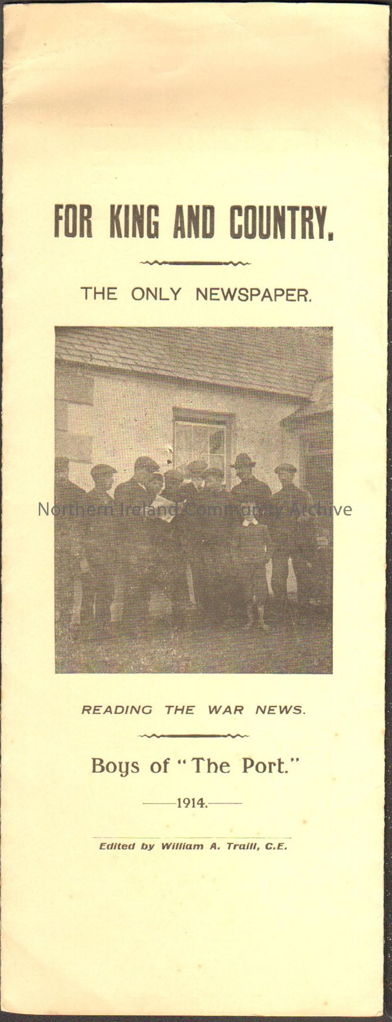 “For King and Country…The Only Newspaper…Boys of “The Port.”” Cream coloured leaflet with photograph a group of men wearing flat caps reading a ne…