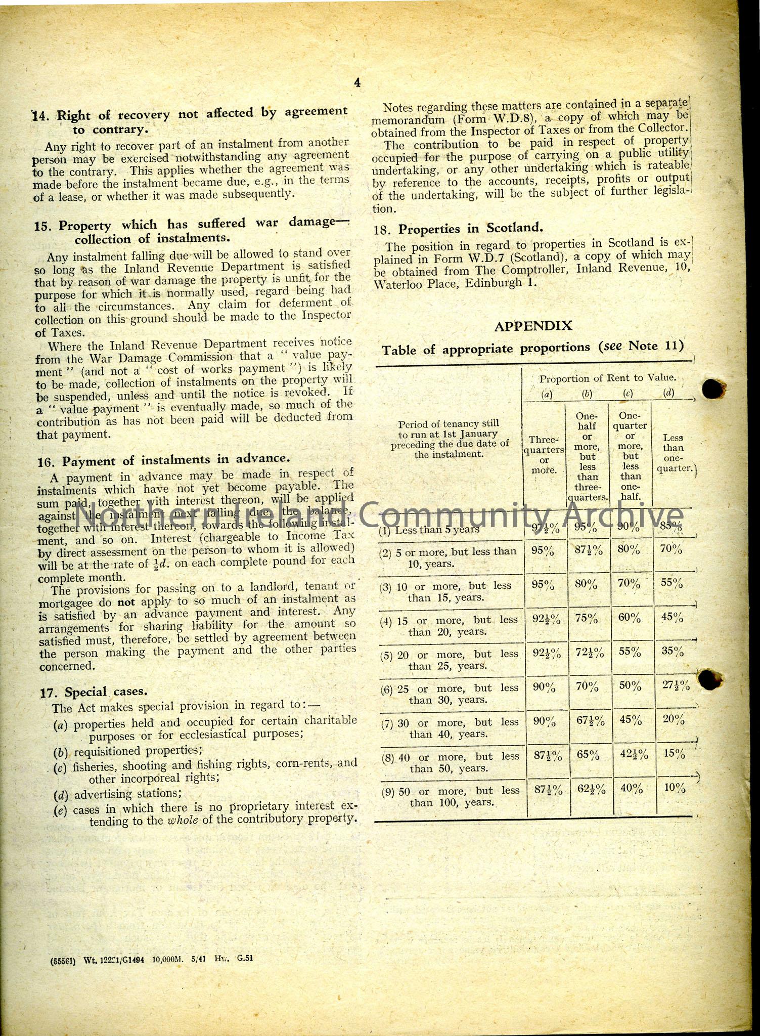Form W.D.7., War Damage Act, 1941 (Part 1) – Contribution payable in respect of land, buildings and other immovable property.