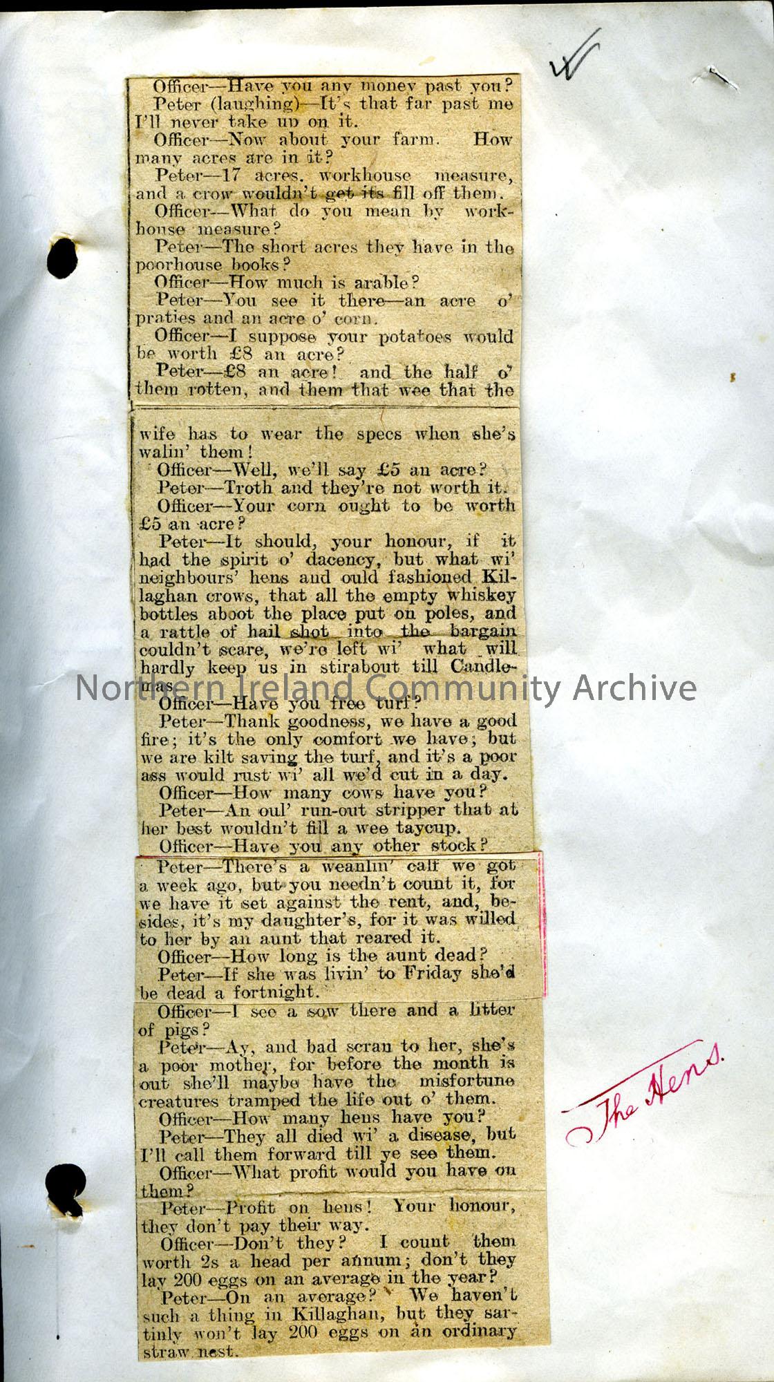 Fourth page of newspaper clippings titled ‘Peter McKenna’s Pension Claim’. A story about Peter Mckenna who was visited by a Pension Officer in order t…