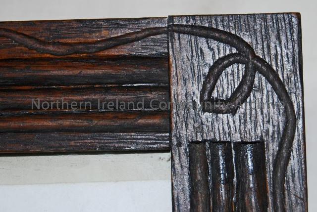 deep frame of mahogany made in Irish Home industries workshop, containing print of the Castle of the MacDonnells' Dunluce. Courtesy of Ballycastle Museum.