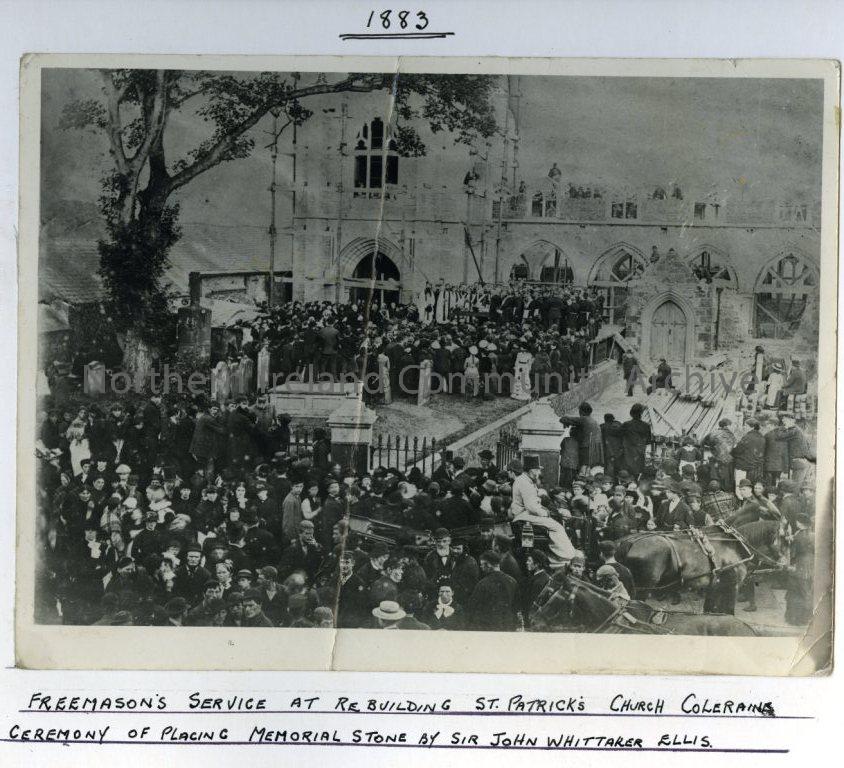 Freemason's Service at Rebuilding St Patrick's Church, Coleraine, 1883. Ceremony of Placing Memorial Stone by Sir John Whittaker Ellis.