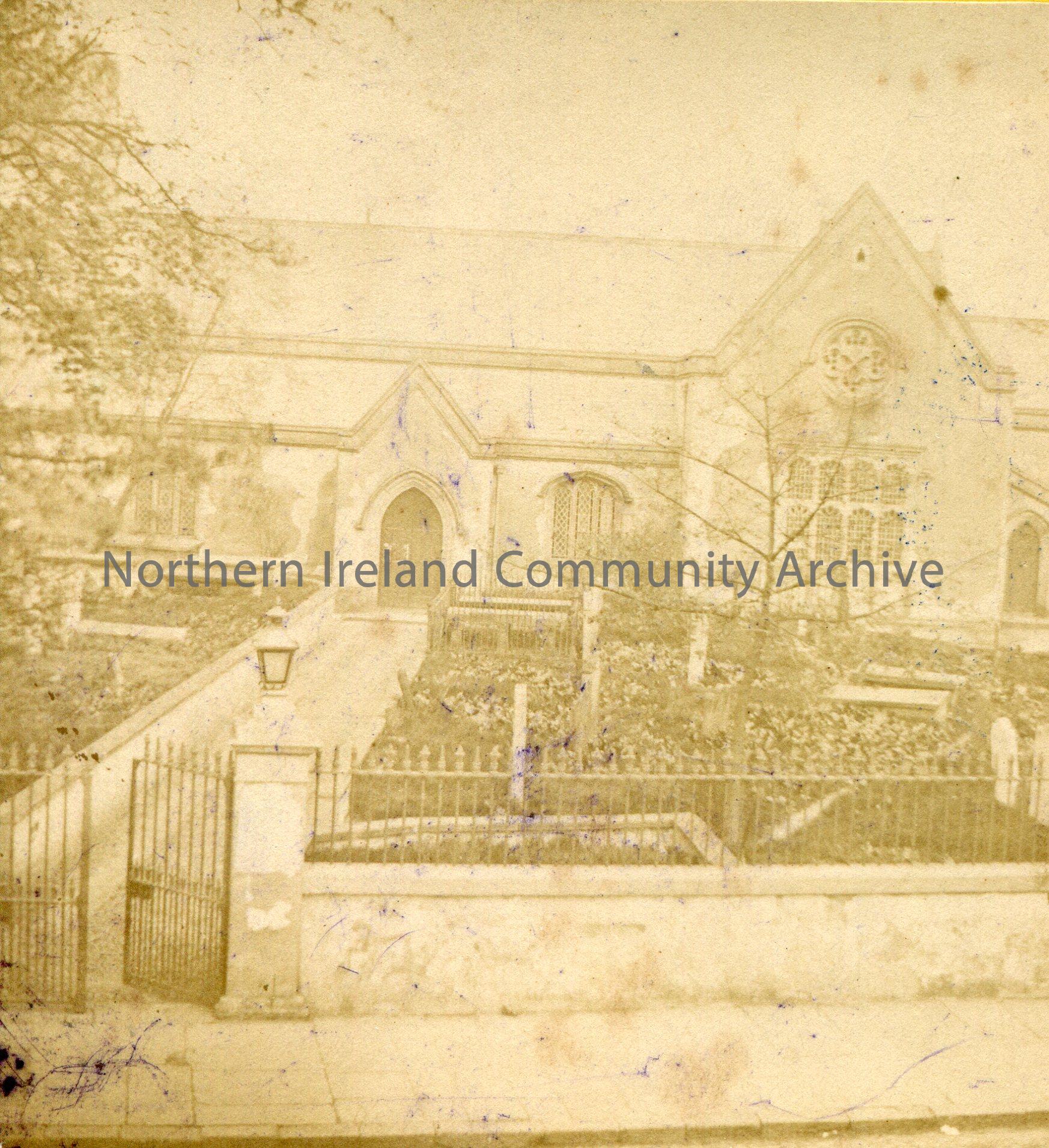 Front, centre section of St. Patrick’s Church, Coleraine. Handwritten on reverse, ‘Coleraine Parish Church’.