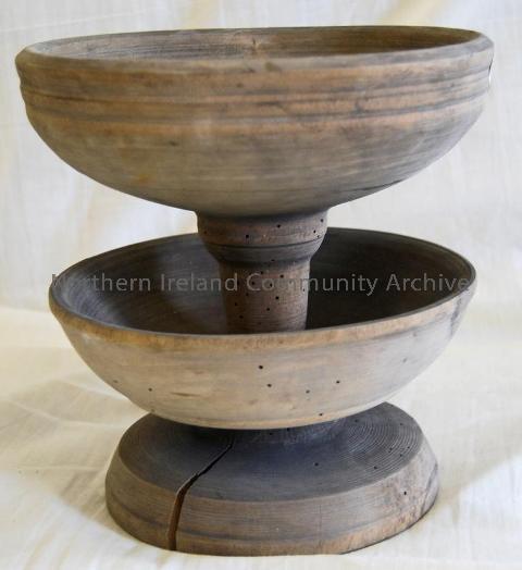 Two-tier fruit dish - turned in sycamore. Courtesy of Ballycastle Museum.