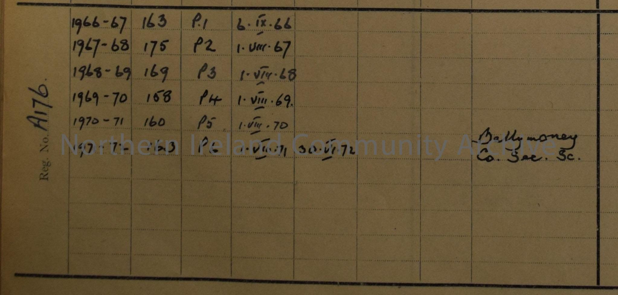 General Register of Killyrammer Primary School. Pale green book with yellow binding and white sticker on front. – 2014.167 (3)