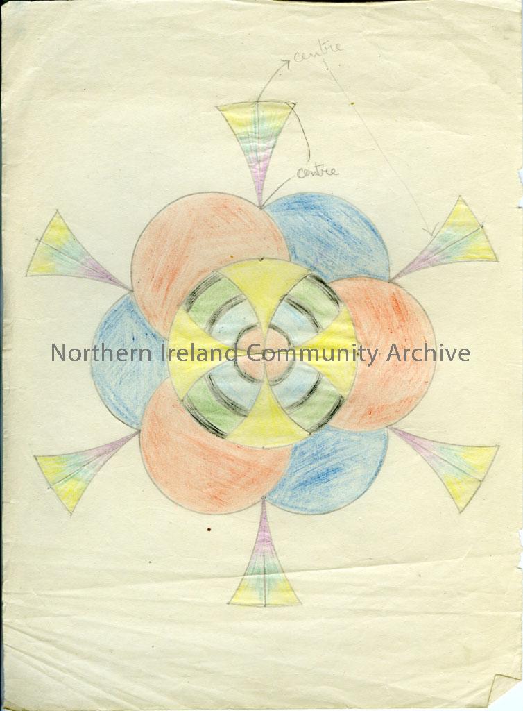 colour geometrical drawing, possibly done with a spirograph or compass