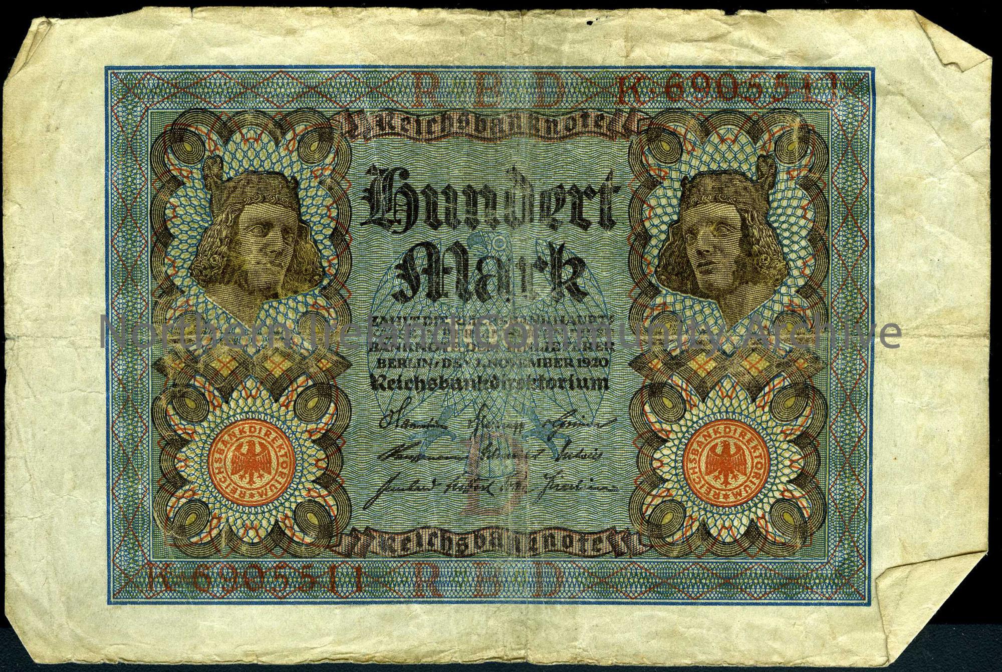 German bank note for 100 marks