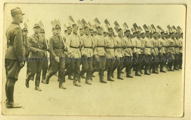 German Troops marching with spades at the slope. Courtesy of the Battery Collection, Coleraine Museum.