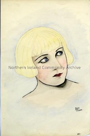 watercolour portrait of gril with blonde bobbed hair. Signed Gerty Trimble, 1927