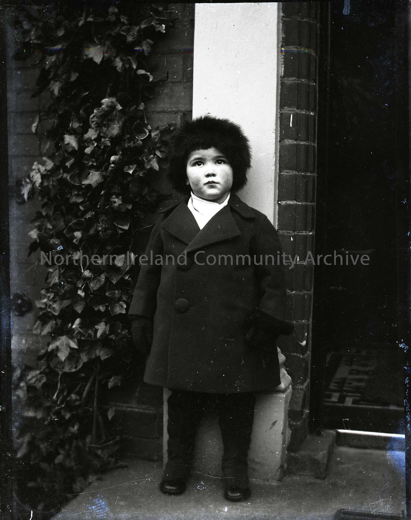 Glass slide negative of a black and white photographic image. Features Sam Henry's daughter, Olive, as a young child.