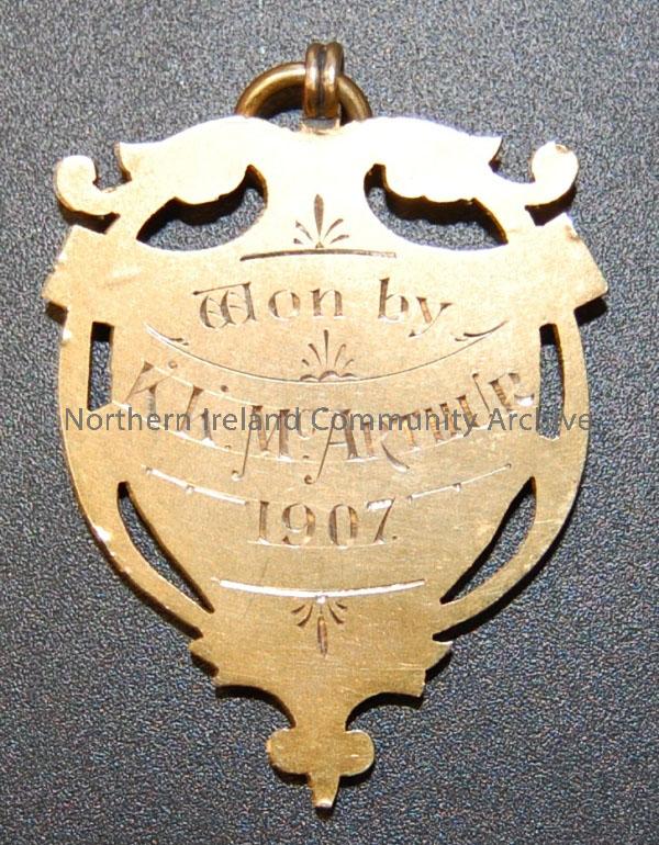 Gold medal; front face shows illustration of runner. Reverse inscribed “won by K.K. McArthur” – 2011.602 (2)