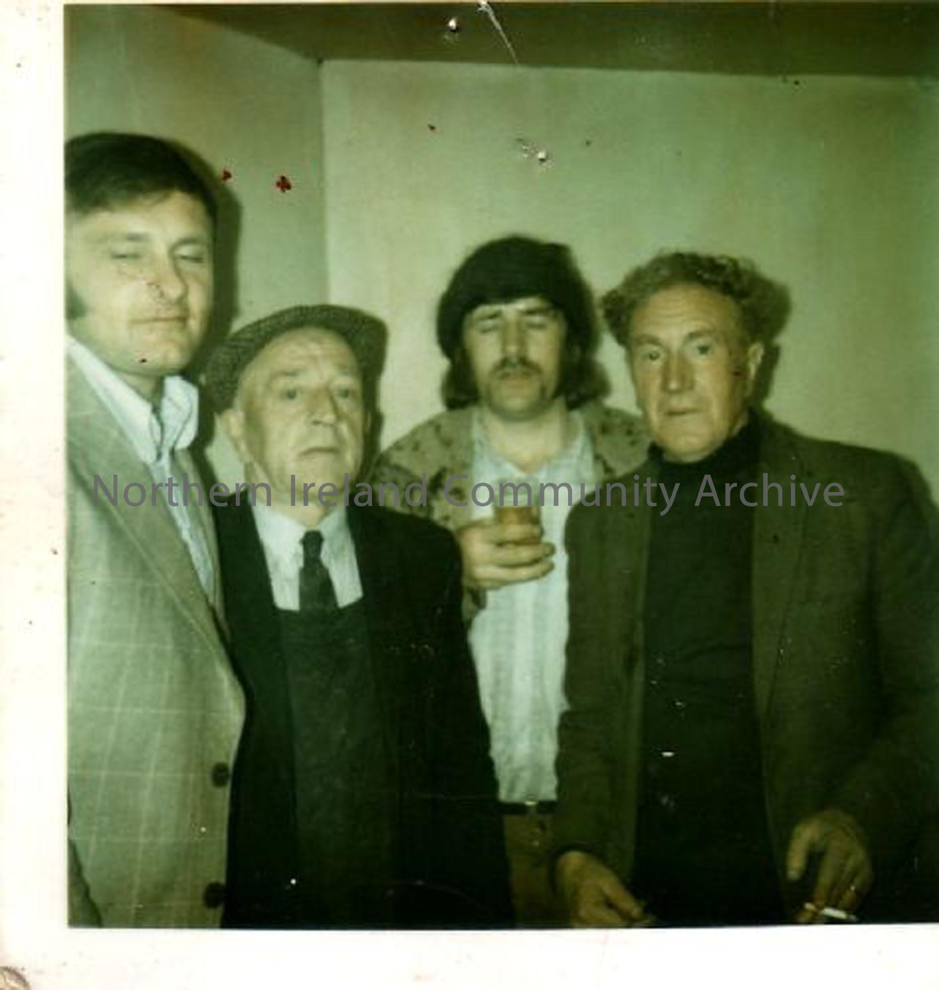 Graham McCaw, his uncle Alec McCaw, his cousin David McCaw and George King enjoying a social evening in Paddy's Back Room