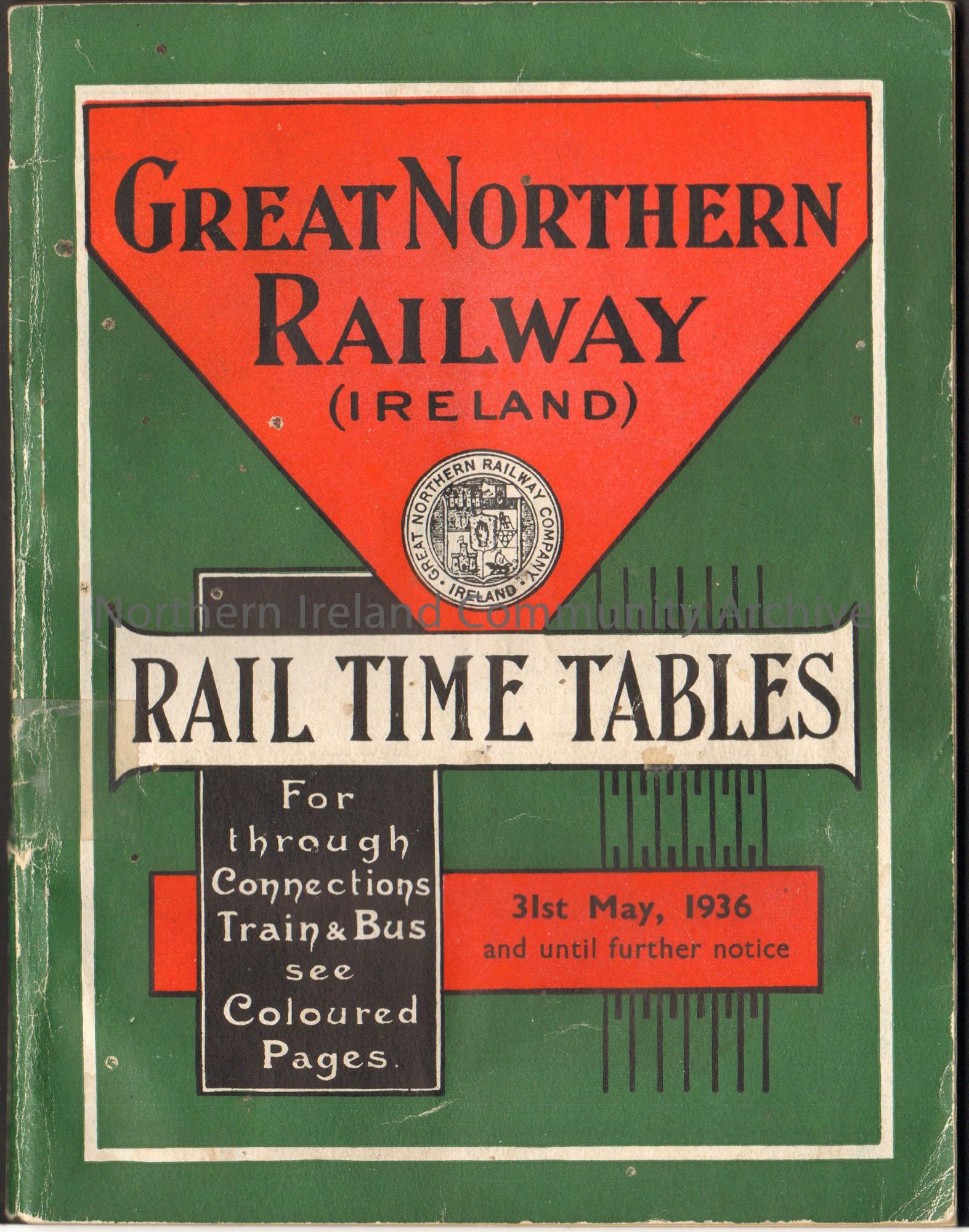 Great Northern Railway (Ireland) Rail time tables for through connections Train & Bus see coloured pages. 31st May, 1936 and until further notice.