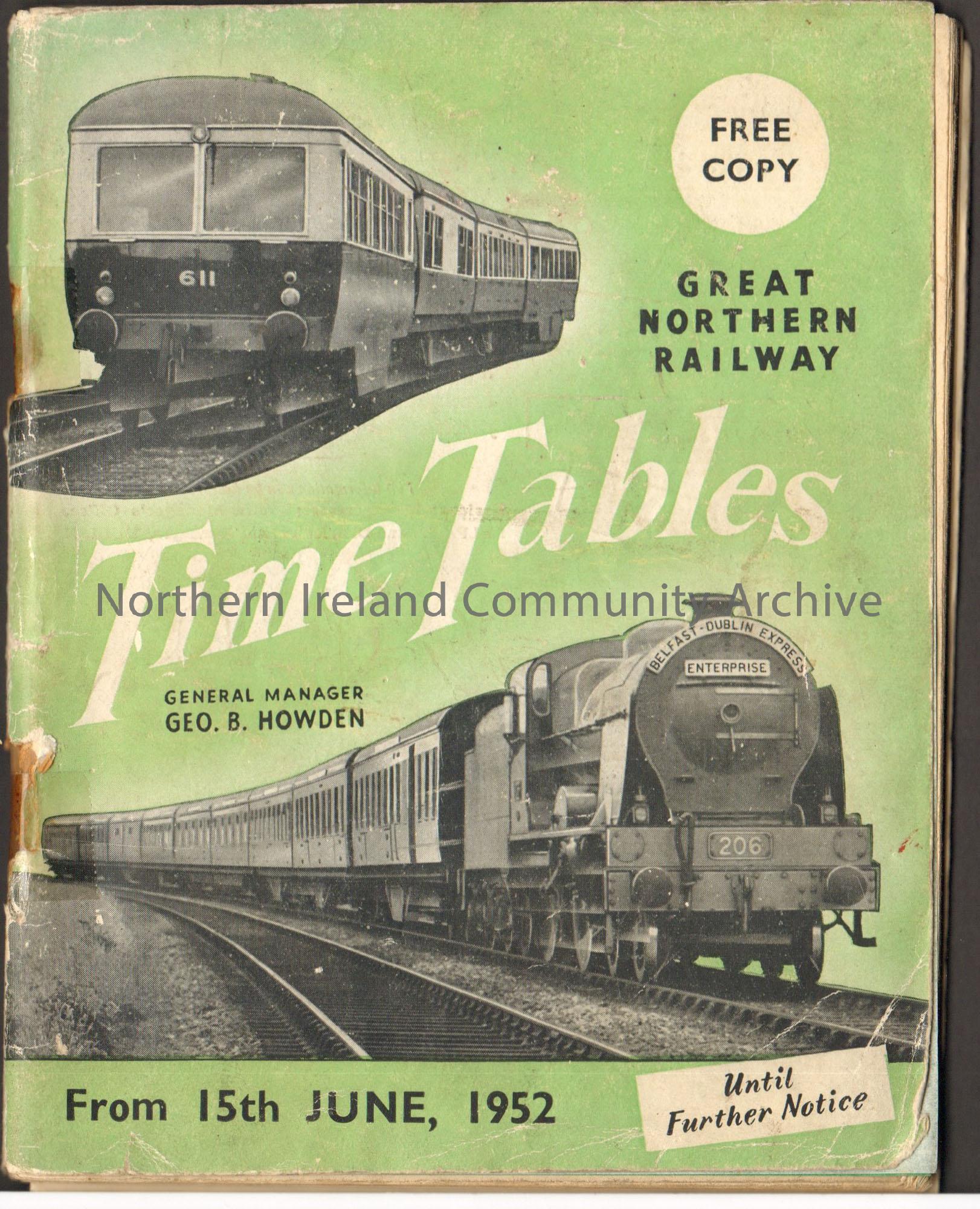 Great Northern Railway Time Tables, General Manager Geo.B.Howden. From 15th June, 1952