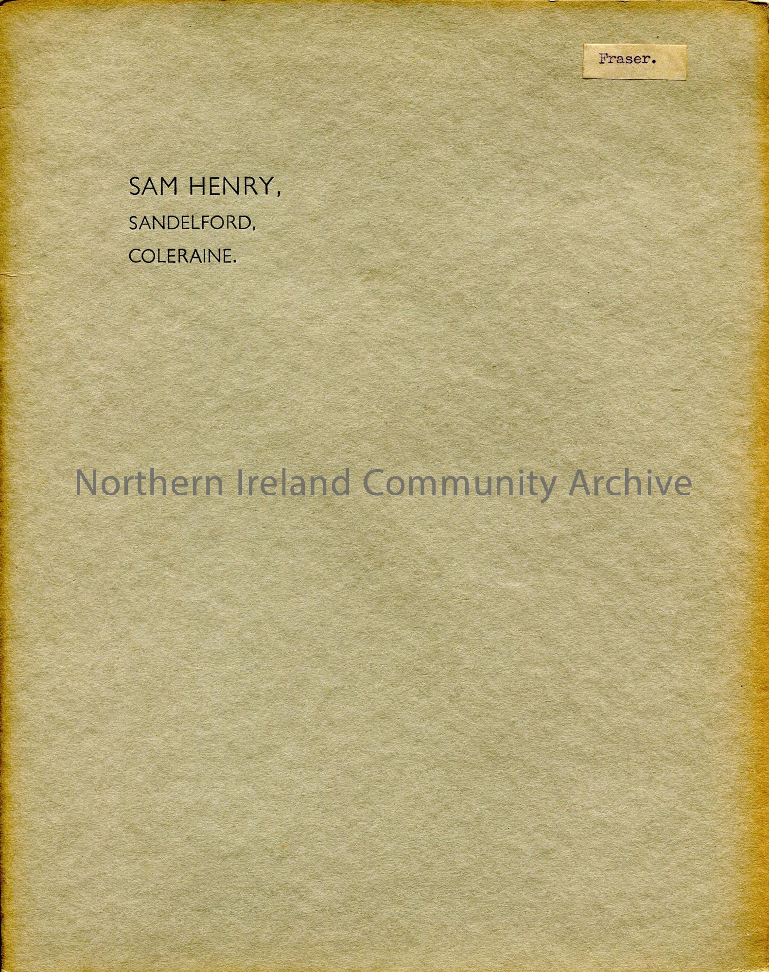 Green folder, imprinted with Sam Henry’s name and address and labelled ‘Fraser’