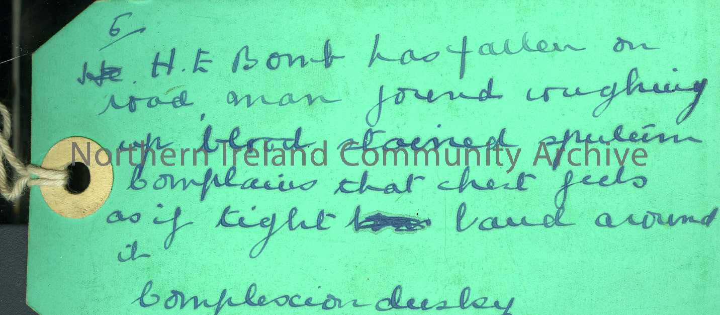 Green labels which were attached to “casualties” during a First Aid Civil Defence excercise held in Garvagh. – 122C