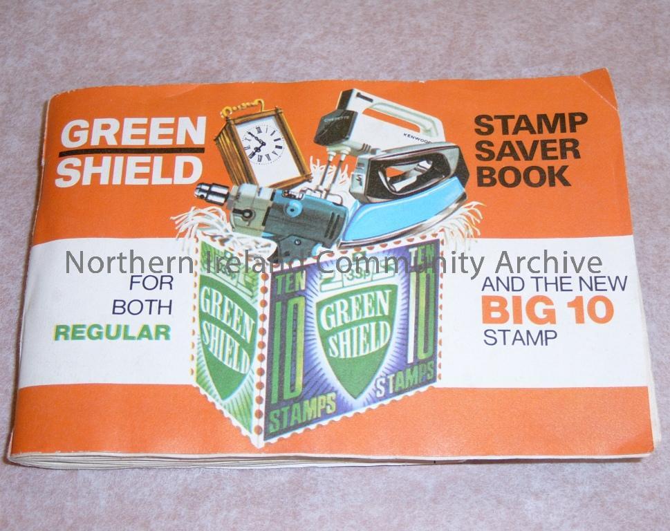 Green shield stamp saver book. For both regular and the new Big 10 stamp. Contains a number of regular stamps inside