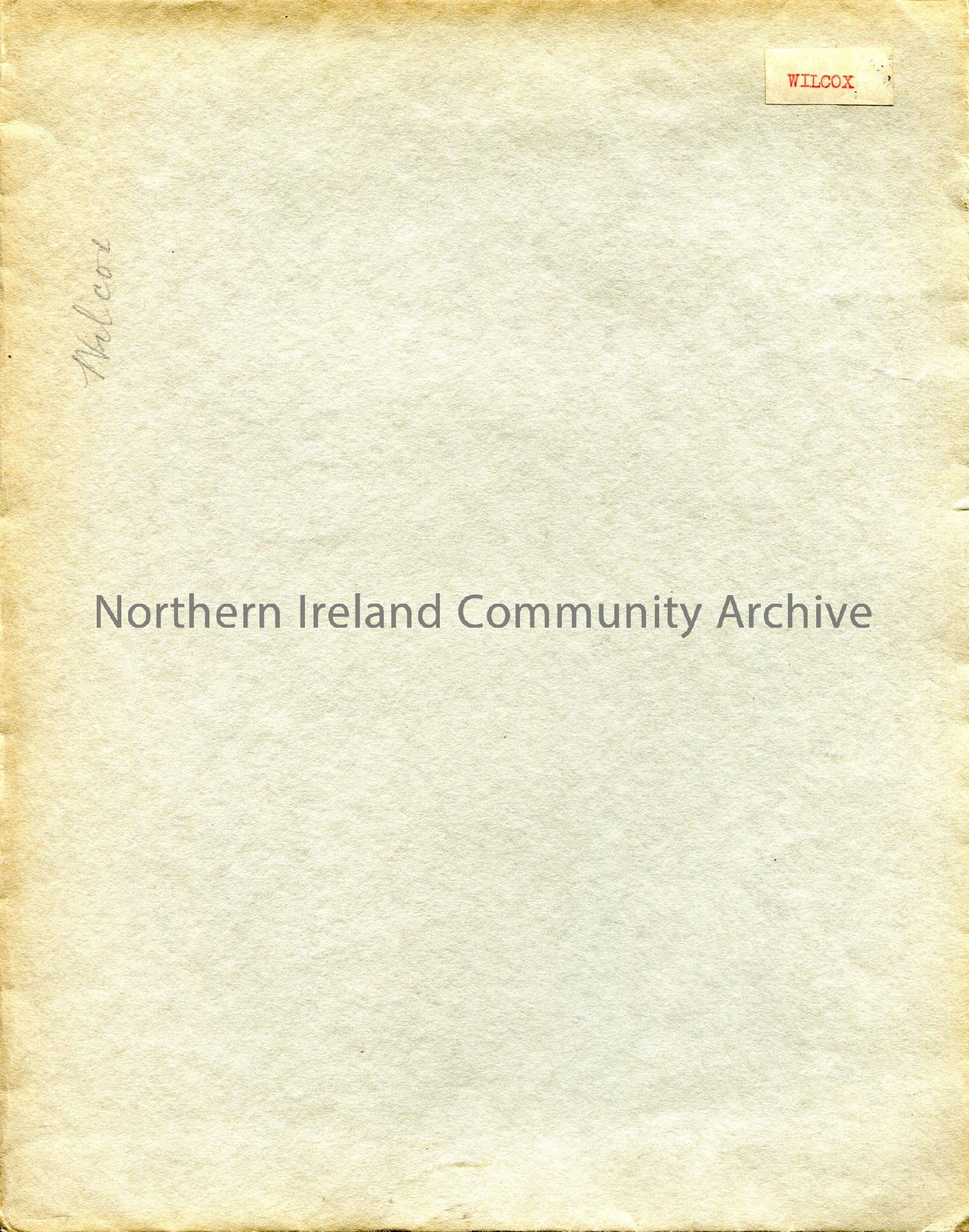 Grey colour envelope labelled, ‘Wilcox’.
