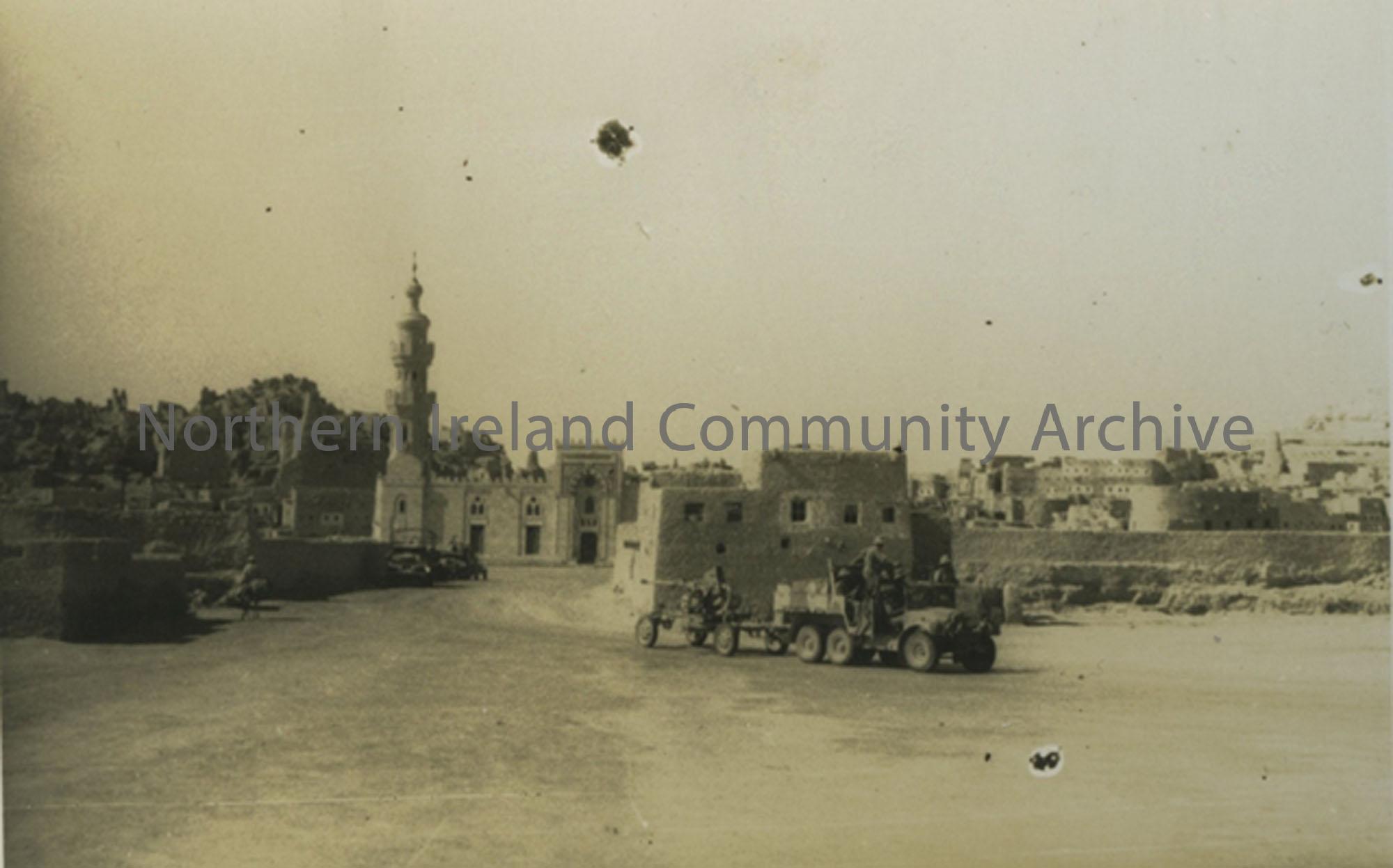 6th LAA Battery Gun Tractors and Guns driving through Siwa Oasis.