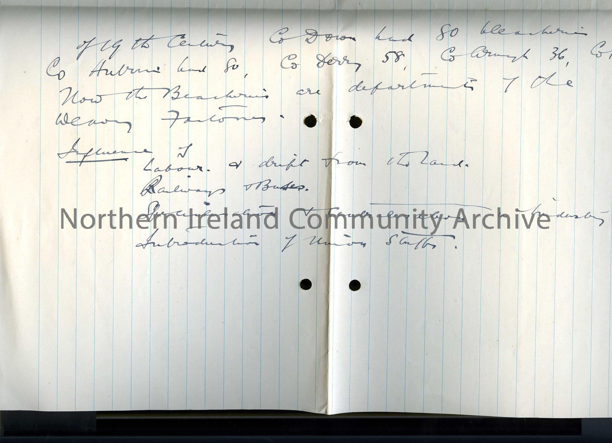 Hand Written document titled ‘History’ detailing various events in the history of Linen production from the Danish invasions to the Industrial Revolut… – Scan020B