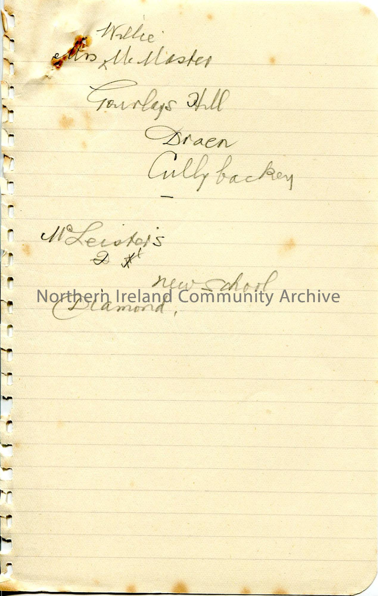 Handwritten brief note re McMaster of Cullybackey