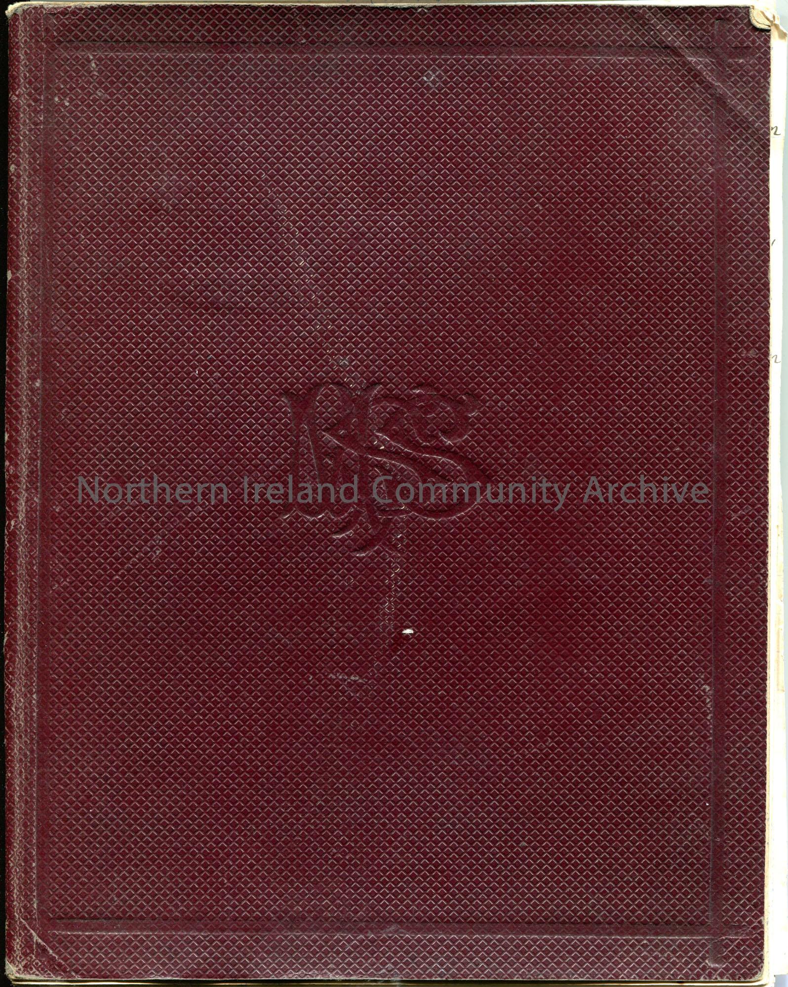 Handwritten essay within lined notebook with dark brown cover. Essay titled, ‘The Rainbow of Mystery by the River Bann’. He discusses – the mysteries …