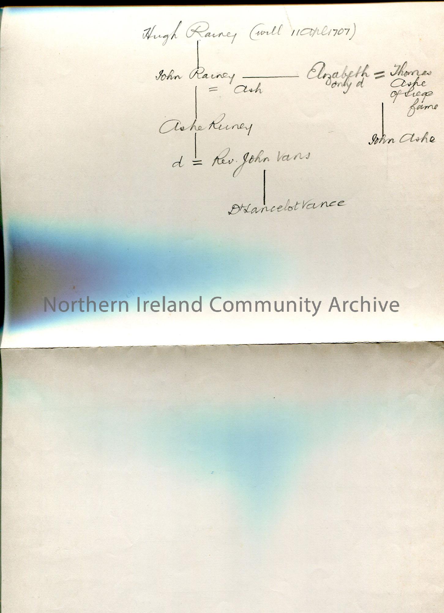 Handwritten family tree in pencil re Jackson pedigree. Two pages attached, written on all four sides. – scan001e