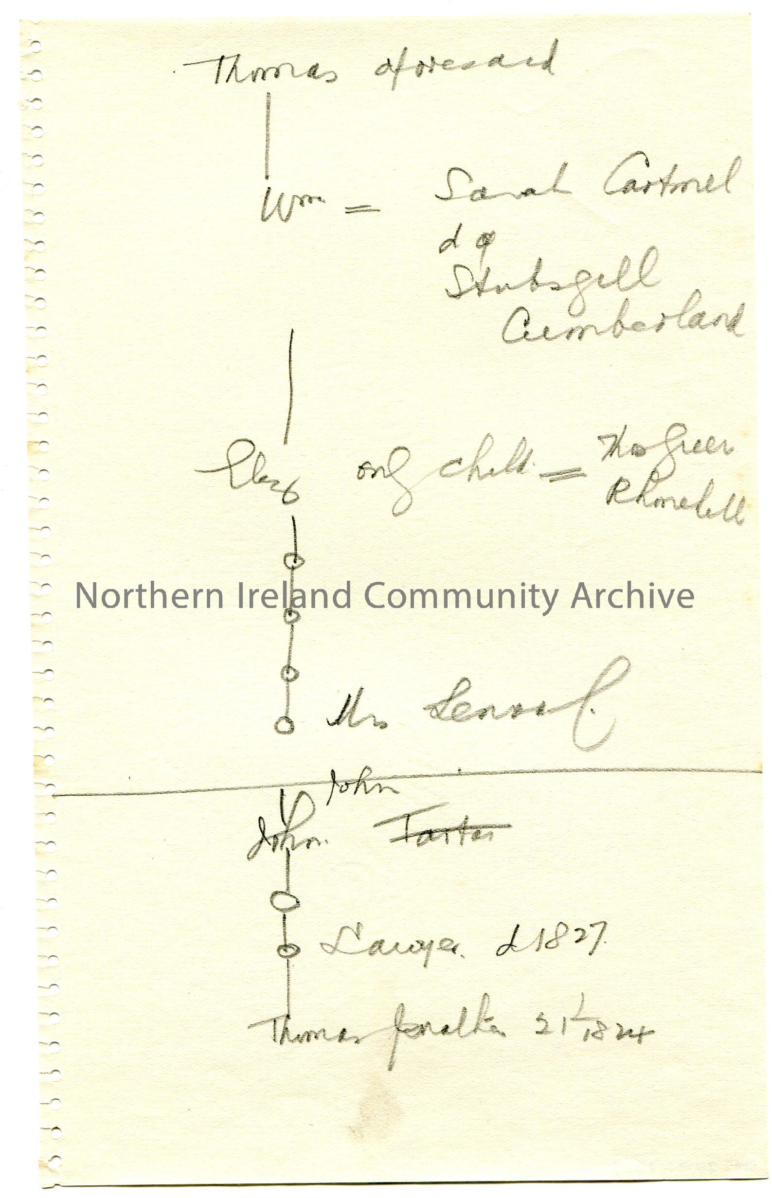 Handwritten family tree re Jacksons. Begins wit...