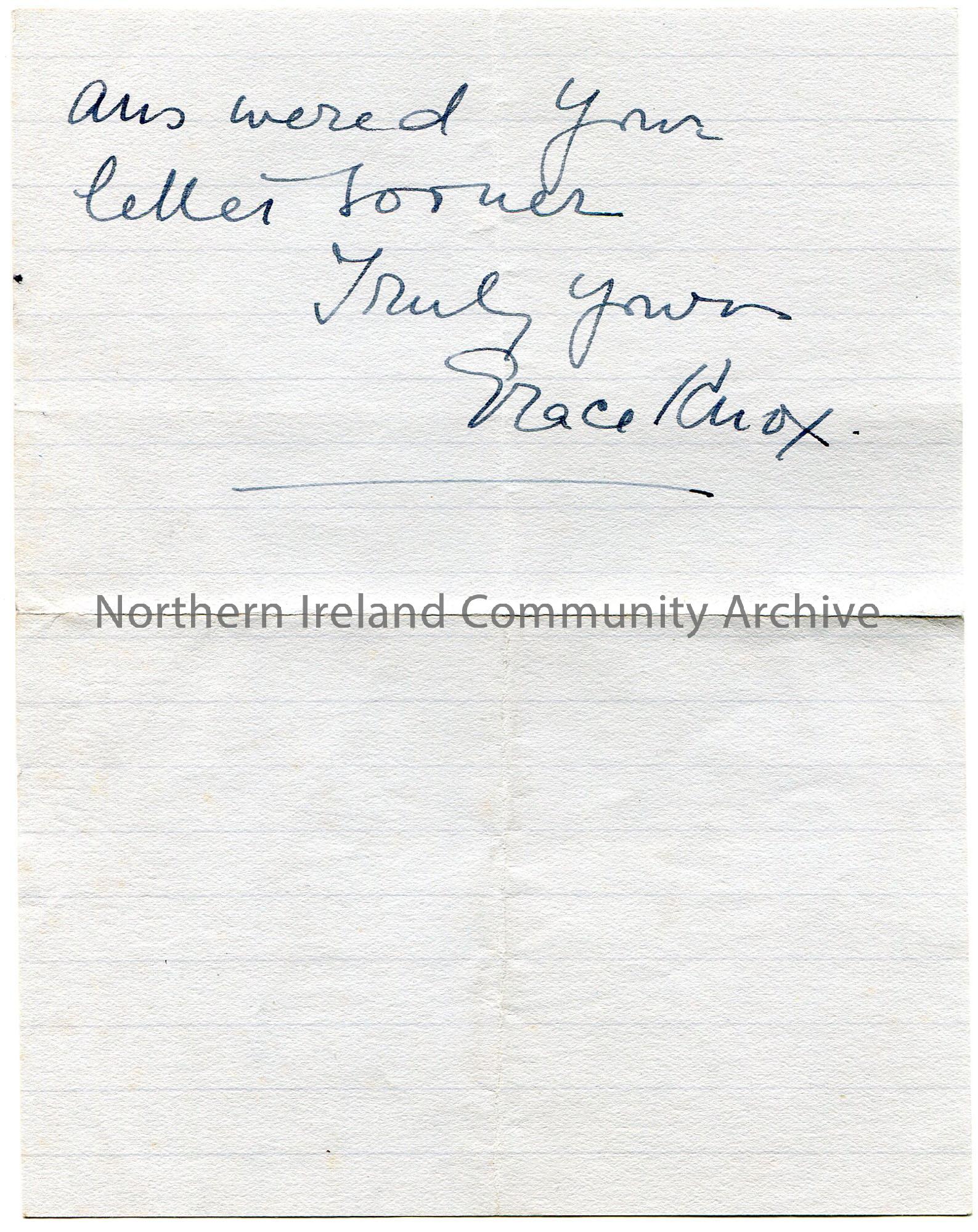 Handwritten letter (double sided) on blue coloured lined paper to ‘Dear Sir’. Informs Sam that the portrait is with Mr Bates. – scan117b