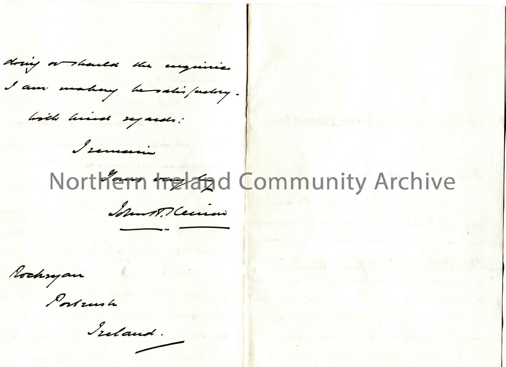 Handwritten letter, double sided, to Miss Hezlet at Rockryan, Portrush, Ireland. Informs Miss Hezlet of a property at 52 Spencer Street, Everton, Live… – scan369b