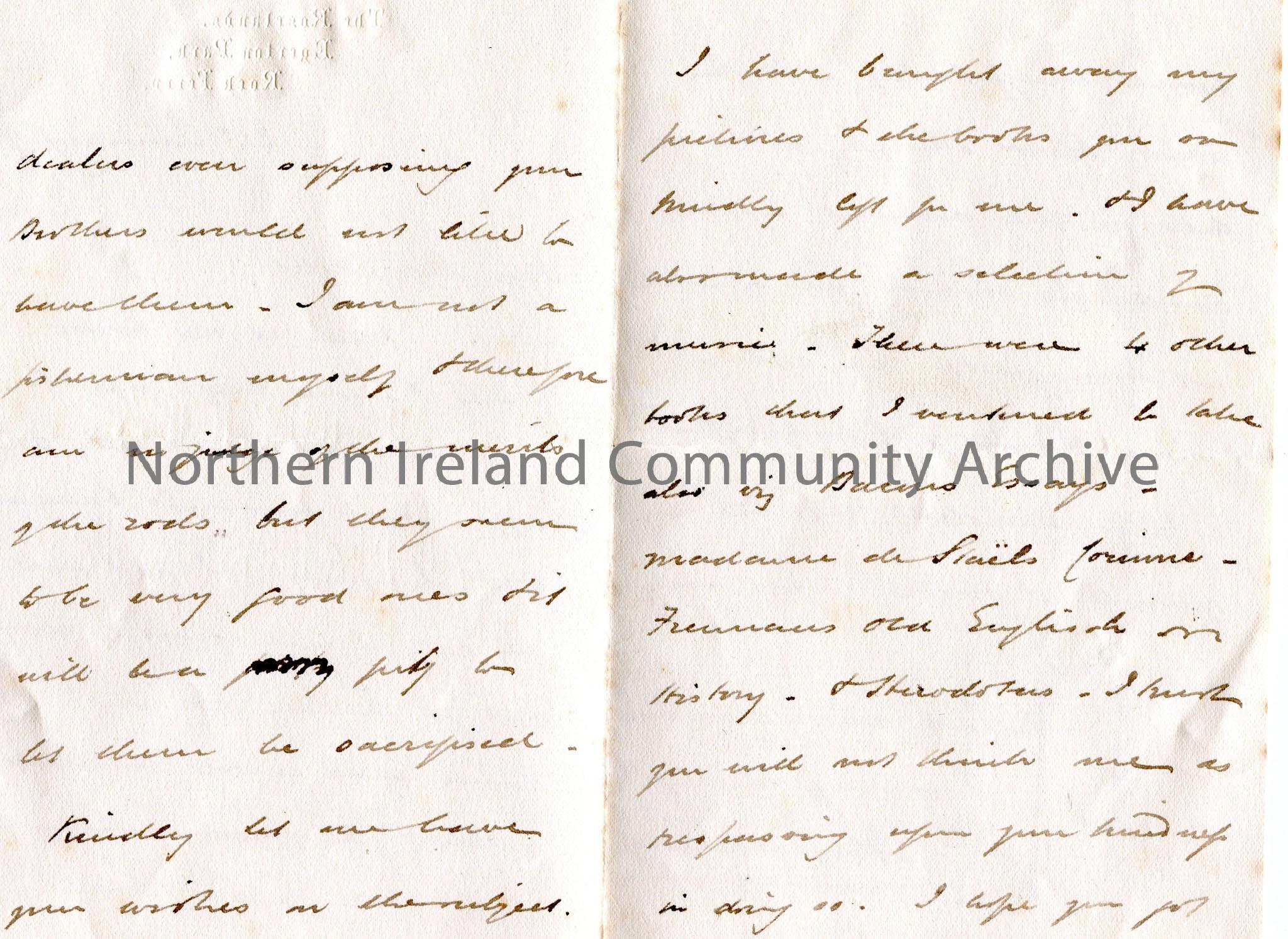 Handwritten letter, double sided, to Miss Hezlet. Writing re fishing rods found at a house and had belonged to Mr Jenkins. Refers to several books lef… – scan371b