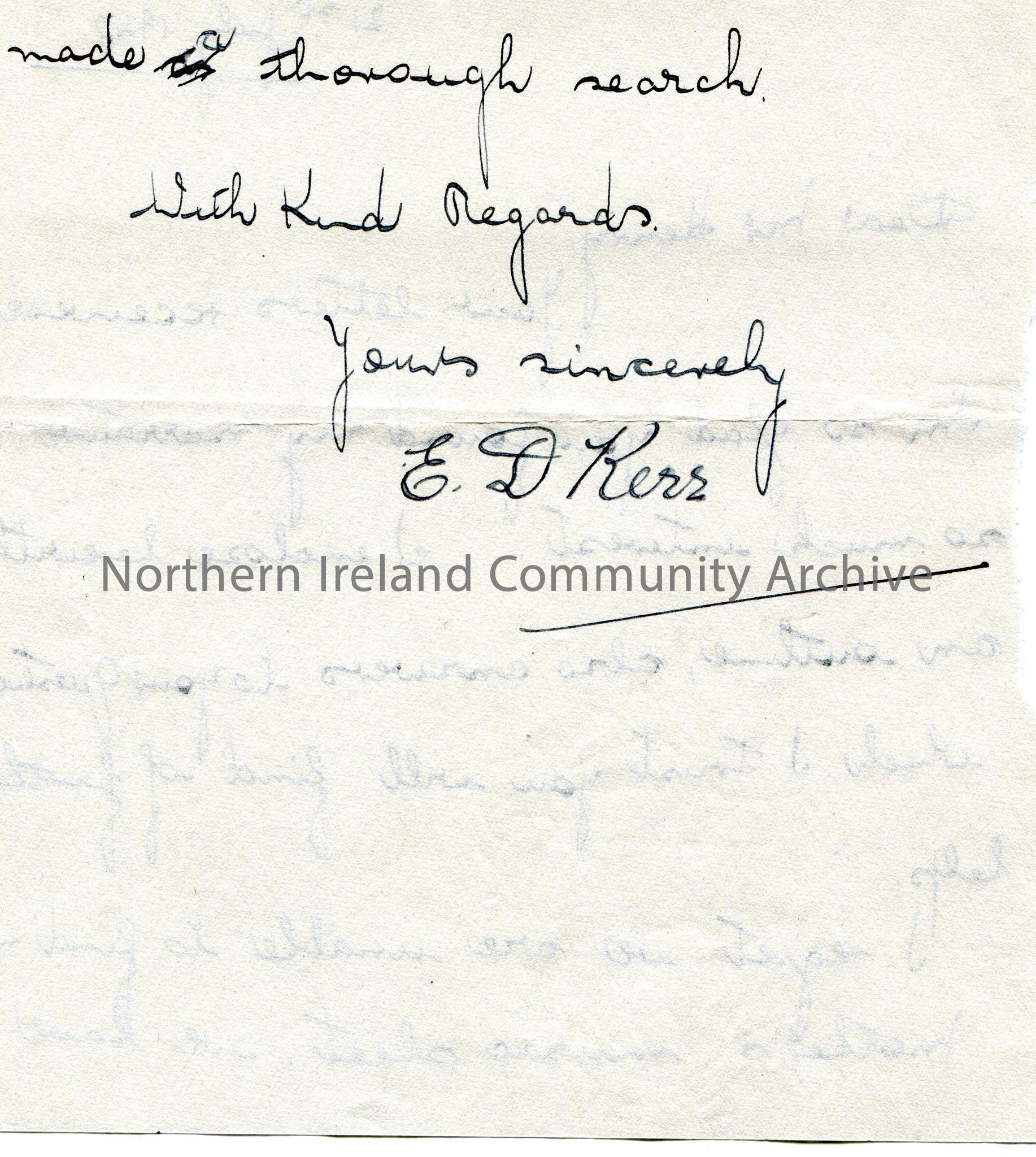 Handwritten letter (double sided) to Mr Henry. Sam found their narrative of interest. Encloses an outline and answers to Sam’s questions. They cannot … – scan392b